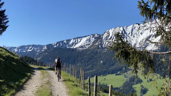 Auch passionierte Biker kommen im Tannheimer Tal auf ihre Kosten. Die Talumrundung bietet Mountainbikern eine über 50 Kilometer lange Strecke mit über 1.500 Höhenmetern und führt direkt am Hotel vorbei.