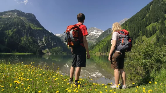 In direkter Nachbarschaft zum Haldensee liegt der Vilsalpsee. Von Tannheim aus sind es vier Kilometer bis in das Naturschutzgebiet. Dort können Sie zum Beispiel eine herrliche Wanderung zur Vilsalpe unternehmen.